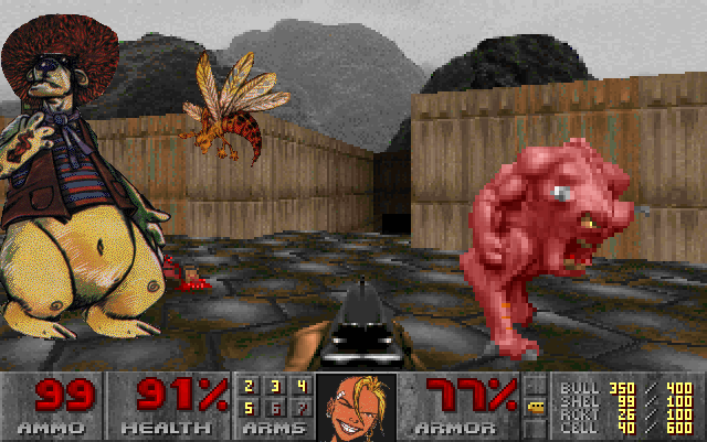 Duke and the dreaded Mr. Butts. The cacodemons could be Ron