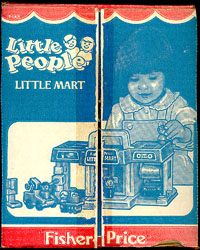 Box (back) Text: Little Mart is the one stop shop for the Fisher-Price Little People. It's a quick service station with a clicking gas pump, car wash and tow truck. It's also a convenience store with its own cashier counter, shopping cart and bag of groceries.