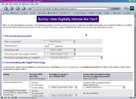 | This research project surveyed Internet users on the types and amounts of digital information produced and used in daily life. The survey was administered online, using a ColdFusion form with an Access database backend. Statistical analysis was performed using SPSS. |