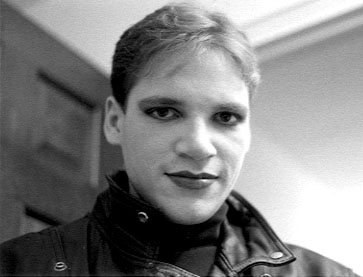 Here's a bit more of a Gothic shot, even if the makeup (amazingly) isn't very noticeable. He liked the leather jacket so much, he got one of his own. And two pairs of leather pants. But that's another story. This photo copyright Nicole Gustas, 1999. Want to see pictures of other beautiful people? Back to You Pretty Little Things. I want to go home! |