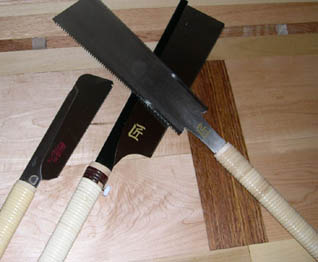 Dozukis are used for crosscutting, this is the act of cutting a piece of wood across the grain. The cutting blade consists of small teeth that are designed to cut on the pull stroke. The top of the blade is set in a sheath of metal, this keeps the blade straight and prevents the blade from cutting at an improper angle. Ryobas are double sided cutting saws. One side has crosscut teeth, the other has rip teeth. The rip teeth only cut one way - on the pull stroke. Very straight and long cuts can be achieved with this blade, in feudal Japan woodworkers used these blades for all of their wood craft MaintenanceMicro plane files can be used to sharpen the small teeth on these blades. If the saws are used improperly you can rip the teeth from the blade. You also need to insure that the saw does not bind on the wood, increased pressure will rip out teeth. If you do this you have to buy a replacement, they are very easy to replace. |